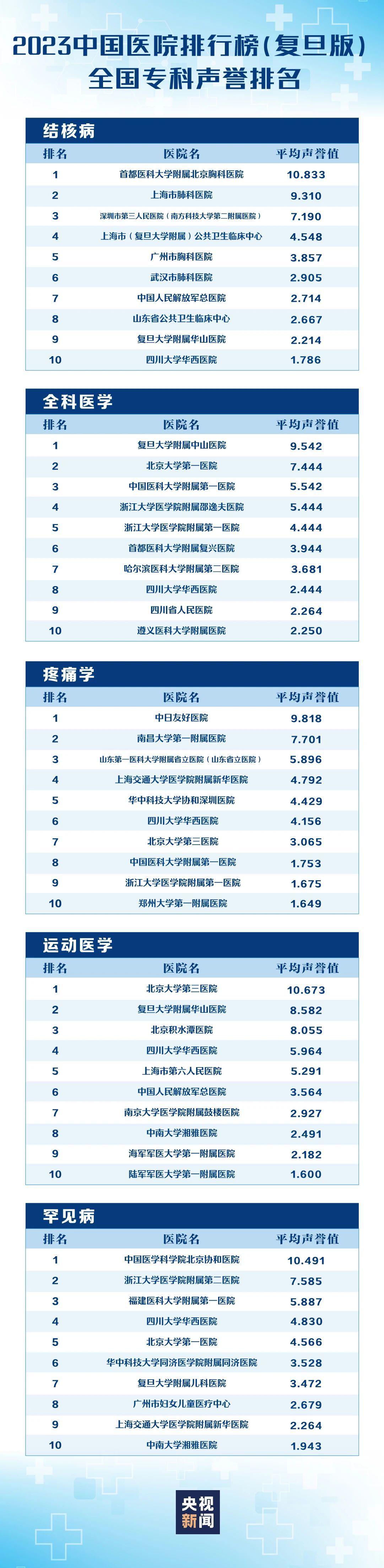 最新2023年度复旦版医院排行榜